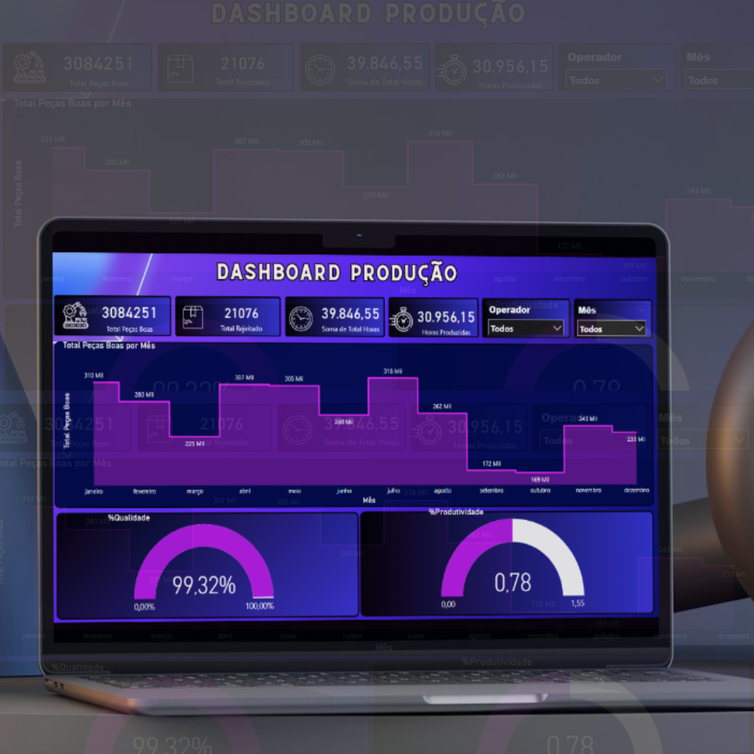 The production dashboard is a visual tool that provides a comprehensive, real-time view of manufacturing operations. Incorporating graphs and indicators, it highlights crucial metrics such as production line efficiency, cycle times, production rate and product quality.